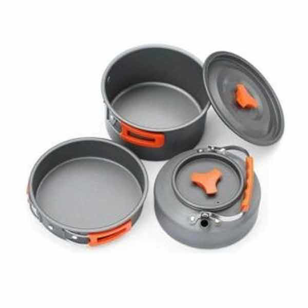 مجموعه ظروف سفری COOKING SET مدل DS-308 برای کسانی که اهل طبیعت گردی و سفر هستند بسیار مناسب می باشد. این مجموعه شامل یک ماهیتابه، یک قابلمه، یک کتری، سه عدد کاسه، کفگیر و ملاقه است.