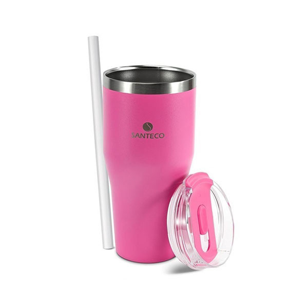 ماگ سانتکو مدل ESCAPE همراهی ایده آل و مناسب برای نوشیدن انواع مایعات گرم و سرد در موقعیت های مختلف مانند طبیعت گردی، پیاده روی، باشگاه، منزل و یا حتی محل کار می باشد که دارای طراحی خاص، ساده و بسیارشیک است. به لطف عایق دو جداره، این ماگ برای حفظ دمای نوشیدنی های گرم و سرد ایده آل می باشد که دمای نوشیدنی ها را تا 4 ساعت گرم و 6 ساعت سرد نگه می دارد. درپوش این ماگ پیچی است و دارای نی بادوام و جداشونده می باشد که خوردن نوشیدنی را برایتان راحت تر کرده و در فعالیتهای پرتحرک مانند پیاده روی، دوچرخهسواری میتوانید از آن استفاده نمایید. ماگ ESCAPE از استیل ضد زنگ 18/8 و ساختار دوجداره با پوشش مسی ساخته شده که دمای نوشیدنی شما را در دمای مطلوب خود حفظ می کند و اطمینان می دهد که دیواره بیرونی لیوان عرق نمی کند. این محصول عاری از مواد شیمیایی مضر و سرطان زا BPA می باشد. علاوه بر این، داشتن این متریال، مقاومت ماگ را به شدت افزایش داده و تا سالهای سال میتوانید از آن در انواع سفرهای ماجراجویانه خود استفاده نمایید. درب این محصول از جنس پلاستیک تریتان شفاف ساخته شده که امکان دیدن محتویات ماگ را برایتان مهیا میکند. برای نی ماگ، فضایی مخصوص بر روی درب طراحی شده که میتوانید جهت نوشیدن با نی از آن استفاده کنید، اما برای مواقعی که ترجیح میدهید برای نوشیدن از نی استفاده نکنید، بر روی درب یک خروجی مجزا تعبیه شده تا با وجود آن دیگر احتیاجی به نی نداشته باشید و مستقیما نوشیدنی را میل کنید. تمام جزئیات این لیوان با دقت بسیار تولید شده که تجربه نوشیدن را برای شما لذت بخش تر خواهد کرد. دهانه این محصول پهن و استاندارد بوده که پر کردن آن را با تکه های یخ یا میوه برایتان آسان تر می کند.