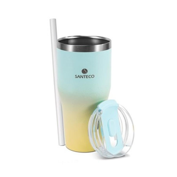 ماگ سانتکو مدل ESCAPE همراهی ایده آل و مناسب برای نوشیدن انواع مایعات گرم و سرد در موقعیت های مختلف مانند طبیعت گردی، پیاده روی، باشگاه، منزل و یا حتی محل کار می باشد که دارای طراحی خاص، ساده و بسیارشیک است. به لطف عایق دو جداره، این ماگ برای حفظ دمای نوشیدنی های گرم و سرد ایده آل می باشد که دمای نوشیدنی ها را تا 4 ساعت گرم و 6 ساعت سرد نگه می دارد. درپوش این ماگ پیچی است و دارای نی بادوام و جداشونده می باشد که خوردن نوشیدنی را برایتان راحت تر کرده و در فعالیتهای پرتحرک مانند پیاده روی، دوچرخهسواری میتوانید از آن استفاده نمایید. ماگ ESCAPE از استیل ضد زنگ 18/8 و ساختار دوجداره با پوشش مسی ساخته شده که دمای نوشیدنی شما را در دمای مطلوب خود حفظ می کند و اطمینان می دهد که دیواره بیرونی لیوان عرق نمی کند. این محصول عاری از مواد شیمیایی مضر و سرطان زا BPA می باشد. علاوه بر این، داشتن این متریال، مقاومت ماگ را به شدت افزایش داده و تا سالهای سال میتوانید از آن در انواع سفرهای ماجراجویانه خود استفاده نمایید. درب این محصول از جنس پلاستیک تریتان شفاف ساخته شده که امکان دیدن محتویات ماگ را برایتان مهیا میکند. برای نی ماگ، فضایی مخصوص بر روی درب طراحی شده که میتوانید جهت نوشیدن با نی از آن استفاده کنید، اما برای مواقعی که ترجیح میدهید برای نوشیدن از نی استفاده نکنید، بر روی درب یک خروجی مجزا تعبیه شده تا با وجود آن دیگر احتیاجی به نی نداشته باشید و مستقیما نوشیدنی را میل کنید. تمام جزئیات این لیوان با دقت بسیار تولید شده که تجربه نوشیدن را برای شما لذت بخش تر خواهد کرد. دهانه این محصول پهن و استاندارد بوده که پر کردن آن را با تکه های یخ یا میوه برایتان آسان تر می کند.