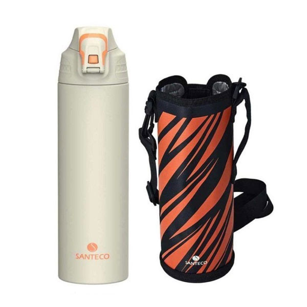 قمقمه 1500 میلیلیتری سانتکو با دیوارهی دو جداره از جنس استیل ضدزنگ 18/8 بوده که از دوام و مقاومت بالایی برخوردار است و میتواند نوشیدنی شما را تا 12 ساعت خنک نگه می دارد و نوشیدنی های گرم را تا 6 ساعت در دمای مطلوب نگه میدارد. سایز و حجم این قمقه به اندازهای بوده که در کوله پشتی یا ساک ورزشی بدون اشغال فضای زیادی جای میگیرد و به راحتی میتوانید آن را همراه داشته باشید. قمقمه سانتکو فاقد BPA (نوعی ماده سمی) بوده و با خیالی آسوده میتوانید نوشیدنیهای خود را در آن نگهداری کنید. دهانهی این قمقمه به اندازهای بوده که علاوه بر نوشیدن راحت محتویات داخل قمقمه، شستشو و پر کردن آن نیز آسان است. این قمقمه دارای درب پیچی ضد نشت از جنس پلیپروپیلن است. همچنین طراحی درب قمقمه به گونهای بوده که به صورت دکمه ای باز و بسته می شود و همینطور، با طراحی قفل مانع از باز شدن تصادفی درب میشود.